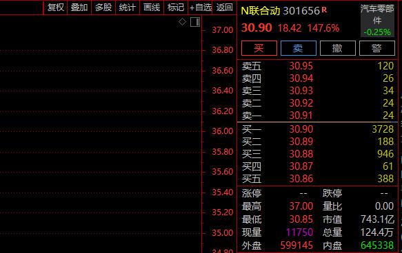 9月15日,联合动力启动招股,发行价12.48元/股,募集资金36亿元。9月25日,联合动力正式创业板上市,上市首日公司股价上涨147.6%,报收30.9元/股,总市值超740亿元。